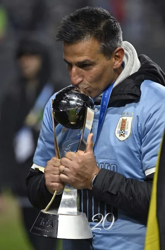 Marcelo Broli, el entrenador de la selección uruguaya campeona del Mundial sub 20 de Argentina, festejó junto a su familia en el hotel de La Plata donde se hospedó la delegación celeste.