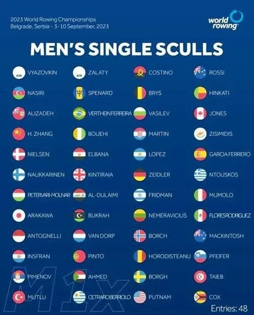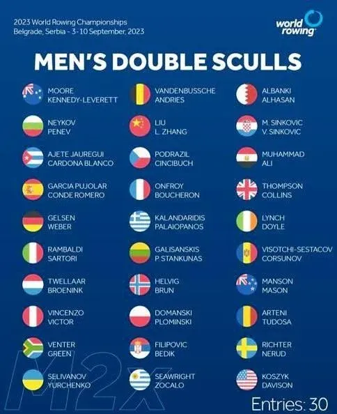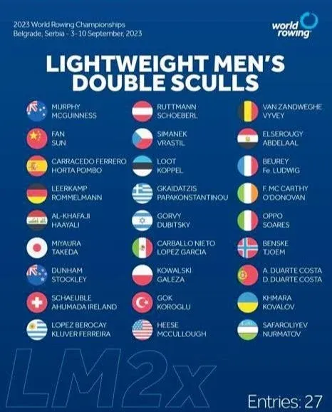 En el doble par peso ligero se pondrán en disputa siete boletos: los seis finalistas A y el ganador de la final B.