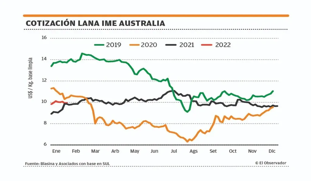 En la última semana el Indicador de Mercados del Este (IME) de Australia volvió a cerrar por debajo de US$ 10 (US$ 9,95) luego de un auspicioso arranque de 2022.