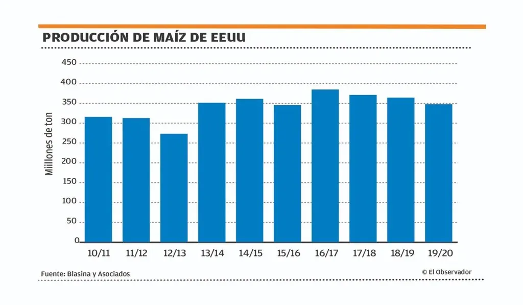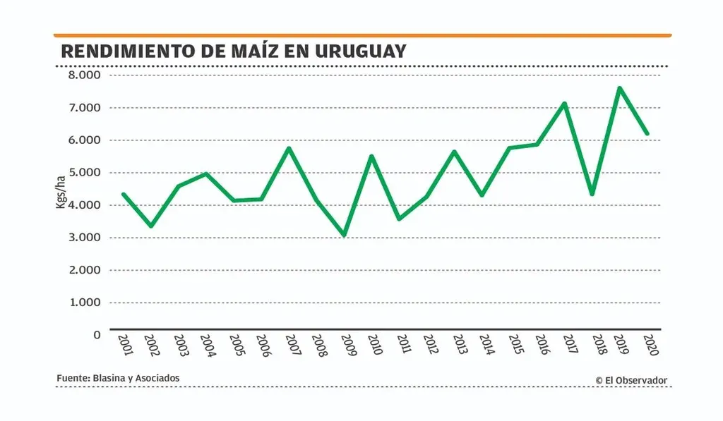 Uruguay se ha vuelto un caso peculiar en maíz, porque ocurren tanto exportaciones relativamente ocasionales como importaciones muy relevantes.