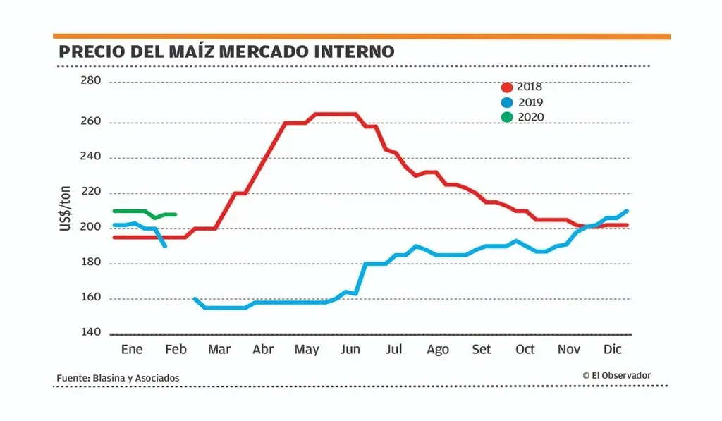 Pero se tratará de un precio que si los rendimientos acompañan, empezarán a sentar los cimientos de una siembra de maíz en la próxima primavera que prolongue el nuevo camino de Uruguay como exportador del grano.