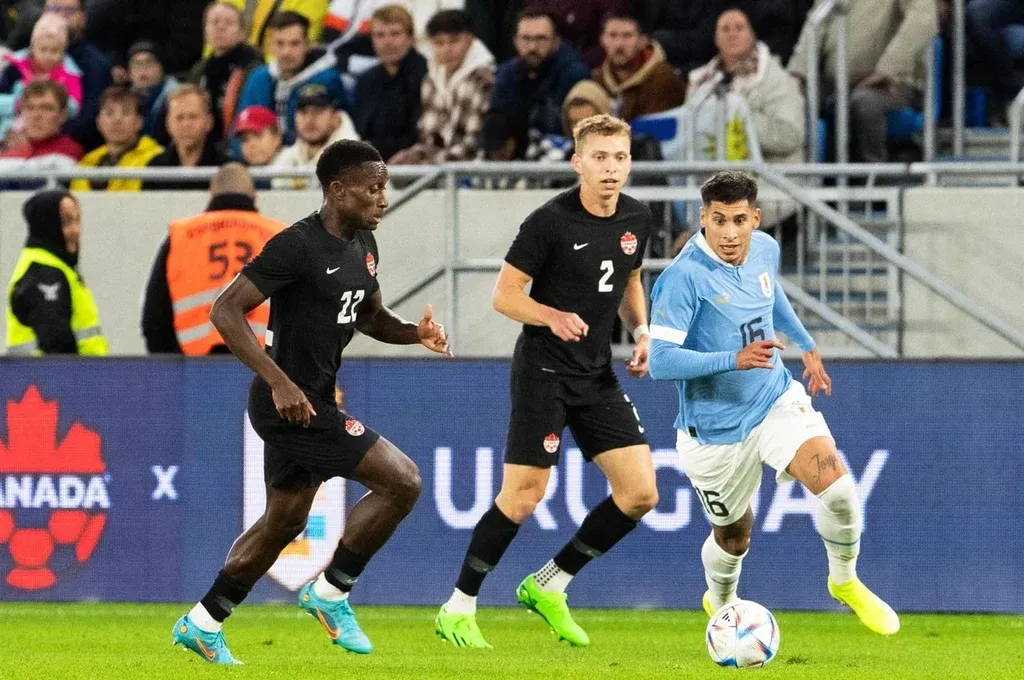 Canadá tuvo alguna llegada en el cierre del primer tiempo, Uruguay se replegó, pero no inquietó al arco de Sergio Rochet, quien estuvo seguro cuando tuvo que intervenir.