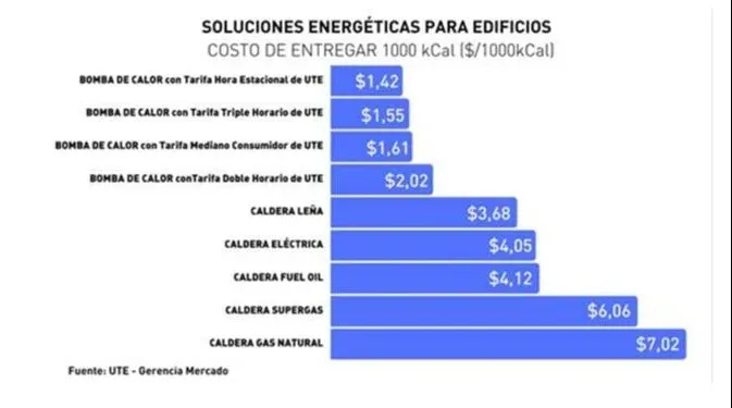 UTE bonifica a los edificios residenciales o de oficinas que instalen una bomba de calor asociada a un servicio con potencia contratada mayor a 40 KW destinados a calentamiento de agua y/o calefacción central.