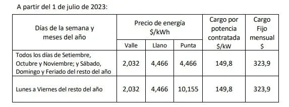 Además, los sábados, domingos y feriados, durante todo el año, el precio de la energía del horario Punta es el mismo del horario Llano (hoy $ 4,466 kWh).