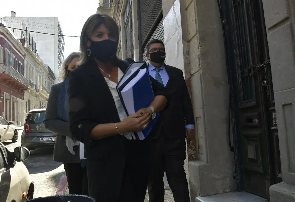 La presidenta de UTE Silvia Emaldi estuvo acompañada del abogado Jorge Barrera al presentar la denuncia