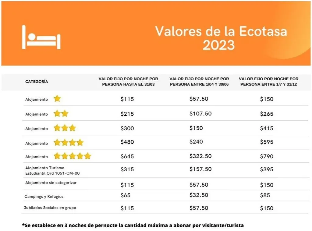 Los valores que se establezcan en julio se cobrarán hasta el 31 de diciembre de 2023. Una vez comience 2024 estos volverán a cambiar. El valor de la Ecotasa cambia tres veces al año, dependiendo de si se trata de temporada alta, como por ejemplo invierno, o baja.