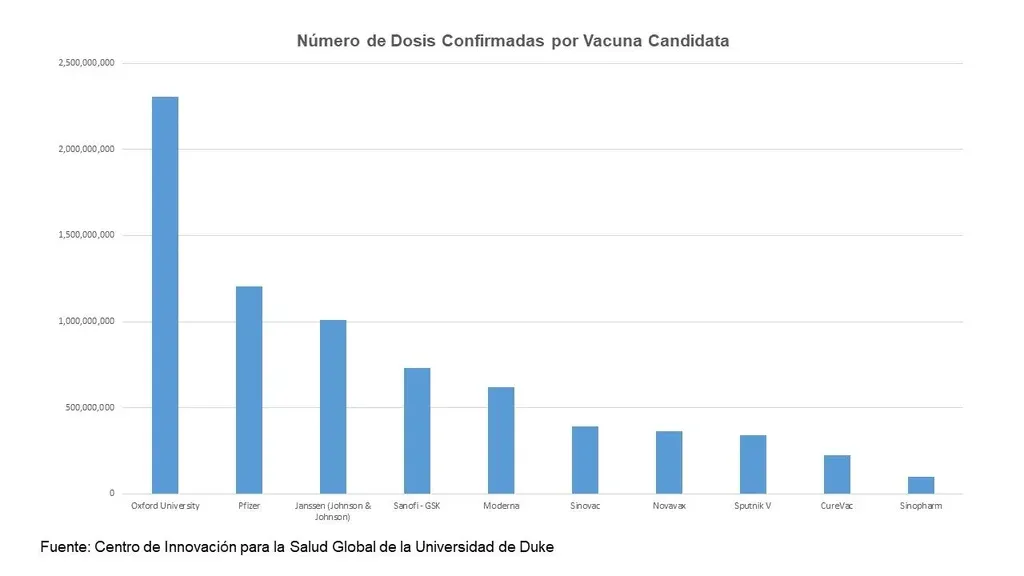 La investigación de la Universidad de Duke se nutre de la información disponible públicamente para identificar candidatos a vacunas y su estado, acuerdos y negociaciones en curso para la adquisición y fabricación, carga de covid por país y planes de asignación y distribución. Además de entrevistas con funcionarios públicos en países clave.