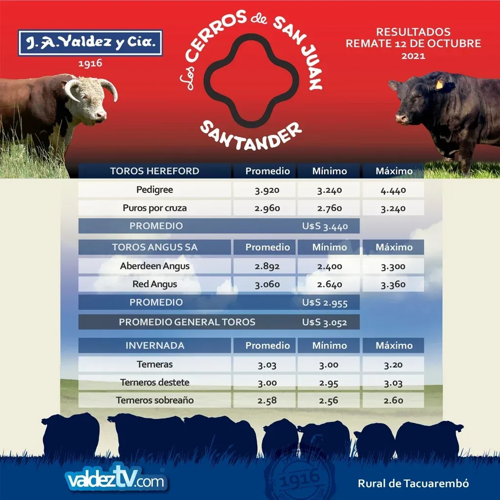 Alejandro “Nano” Núñez, rematador de la firma, comentó a El Observador que todo el equipo de Valdez y Cía quedó muy contento con los resultados, porque “la torada se vendió muy bien”, con mucha agilidad en el Angus y con toros elegidos en el Hereford, mencionó.