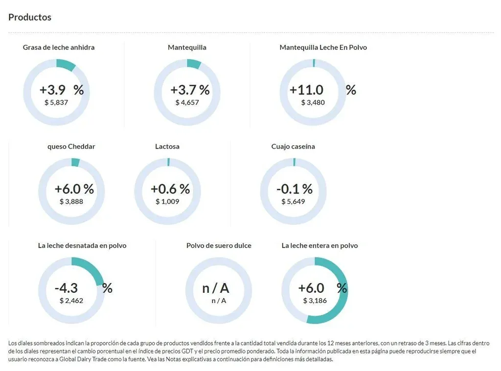 - El único producto que sufrió un baja (de 4,3%) fue la leche en polvo descremada que cotizó US$ 2.462