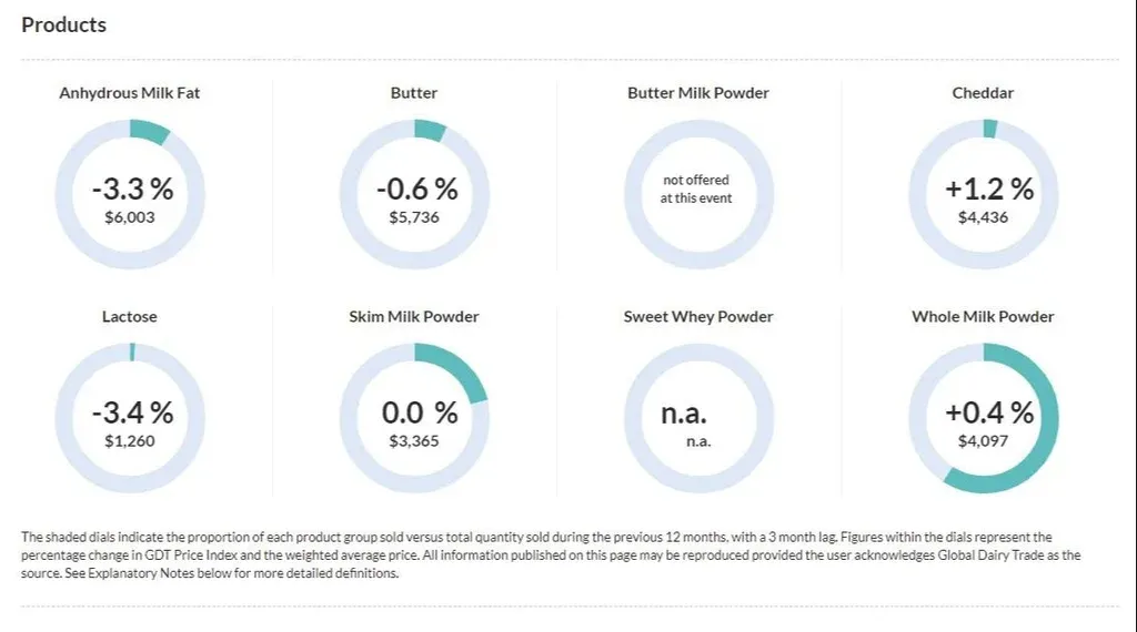 El índice global de precios de los productos lácteos mostró este martes una leve baja, apenas perceptible.