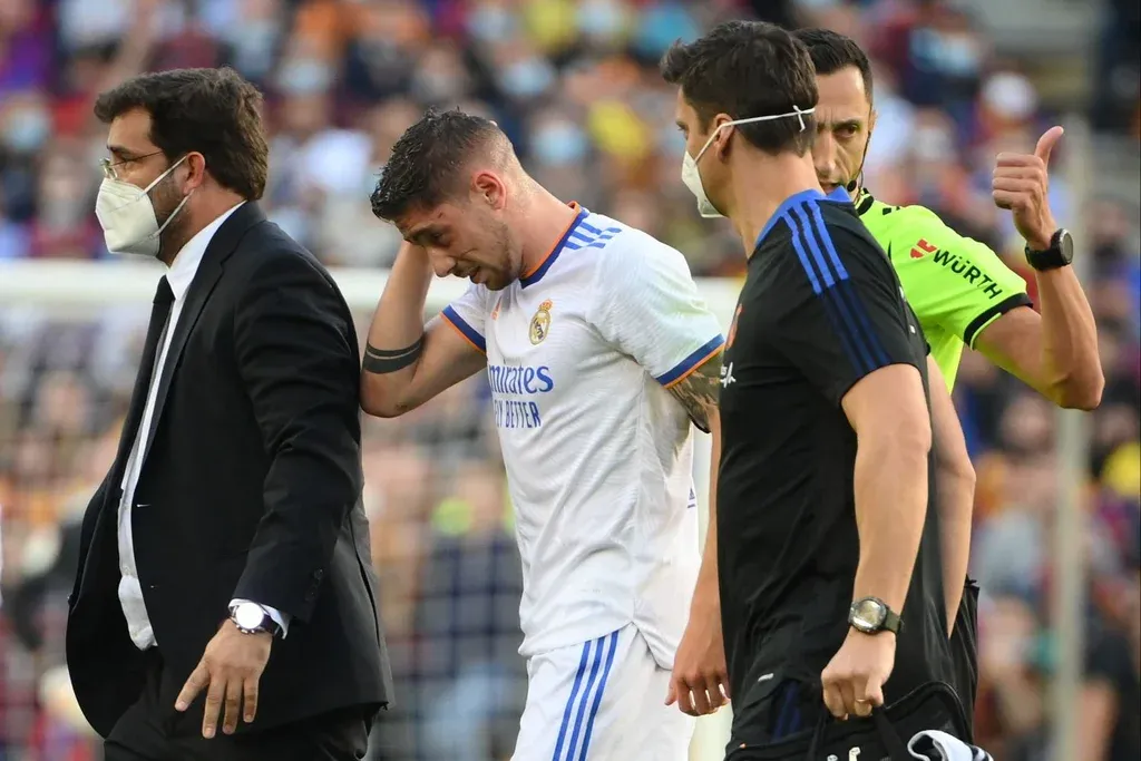 Valverde se lesionó en el clásico ante Barcelona. Entró en el minuto 72 y en un salto con Gerard Piqué recibió un golpe en la cabeza y cayó mal. Pareció verse una torsión en esa zona, e incluso los médicos que ingresaron a la cancha para atenderlo.