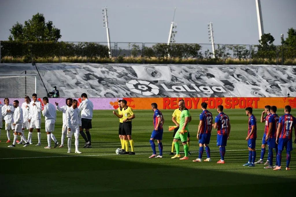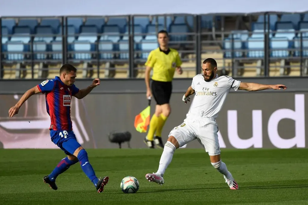 Real Madrid logró este domingo mantenerse a dos puntos de Barcelona en la reanudación de la Liga Española que estuvo parada tres meses a causa de la pandemia del coronavirus. Los merengues le ganaron 3-1 Eibar.