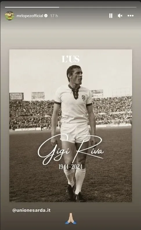 Los clubes de la Serie A de Italia, comenzando por el Cagliari, rindieron homenaje a Riva, "un mito italiano", según la AS Roma.