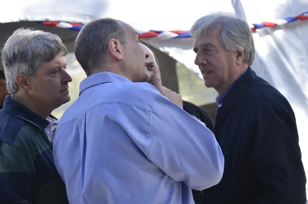 Según el relato del expresidente, el motivo de las heridas fue una demostración de afecto excesivo de la noche anterior en Rosario (Colonia), ciudad que visitó en medio de su gira por el interior. “Vienen los vecinos y te dicen ‘vamo’ arriba Tabaré’, y te golpean la espalda”, comentó Vázquez mientras le mostraba a sus compañeros cómo lo palmeaban. La acumulación de saludos efusivos le dejó la espalda dañada, al punto de compararla con una insolación.