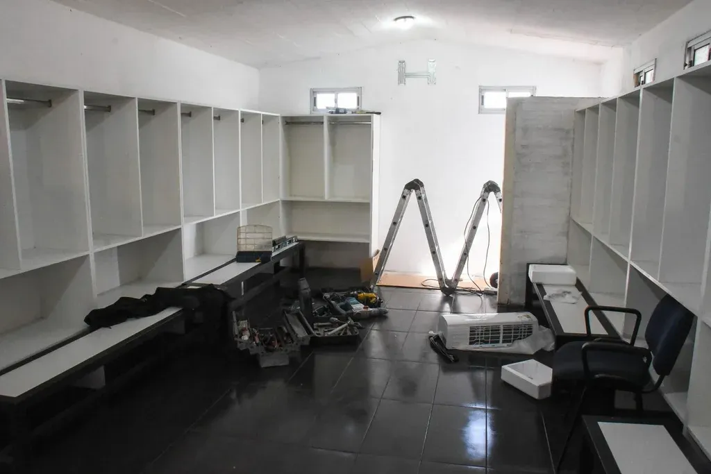 Un amplio espacio para cambiarse, con placares, ocho ducheros, un sector aparte con una camilla y próximamente un televisor, según explicó el anfitrión, quien se encarga de la limpieza y de la pintura del lugar.