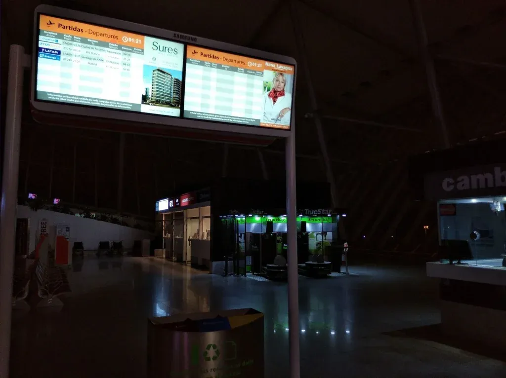 Las pantallas que detallan los vuelos, por ejemplo, dan la pauta del momento que vive el mundo. Es un domingo de madrugada y hay solo cuatro vuelos en pantalla: de Copa Airlines, de Amaszonas, de Latam y de Air Europa.