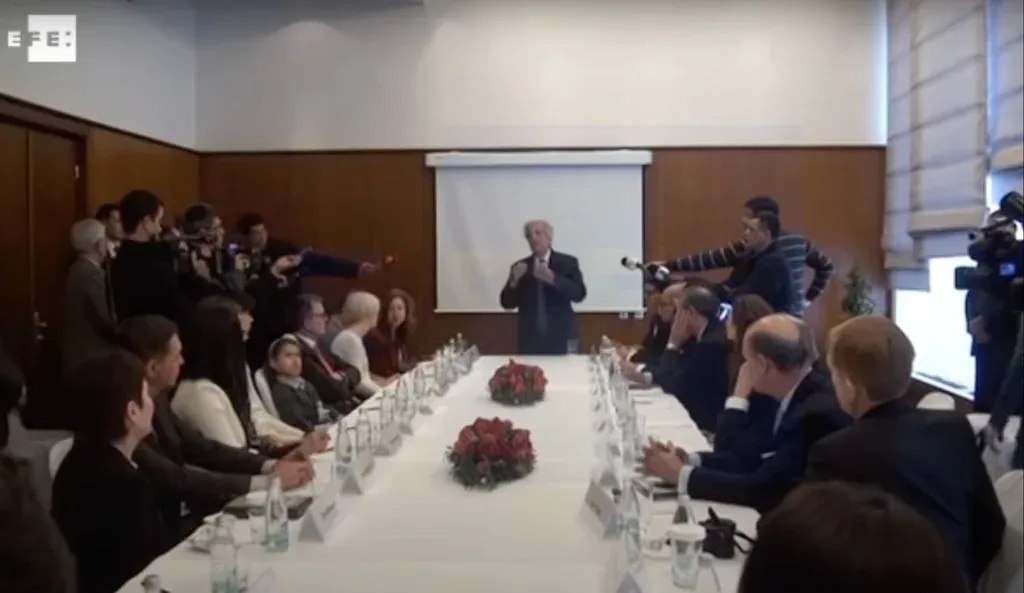A la derecha, Victoria Rodríguez en la visita del presidente Vázquez a Moscú en 2017