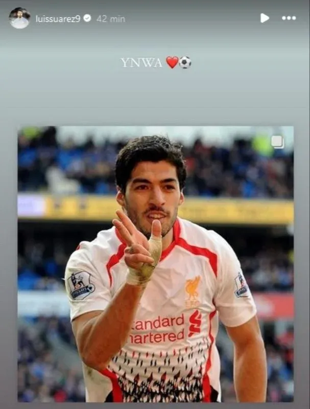 Mientras el uruguayo se prepara para jugar por la MLS, se tomó unos minutos para escribir "YNWA" (el lema de Liverpool de Inglaterra que significa You're Never Walk Alone (Tu nunca caminarás solo))"