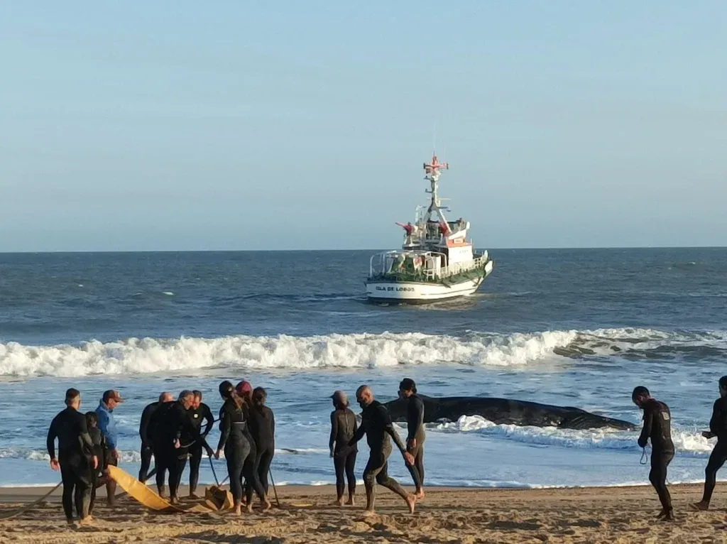 Sin embargo, a la tarde hubo un nuevo reporte de que quedó varada en la costa en la zona de Las Garzas, próximo a la Laguna de Rocha.