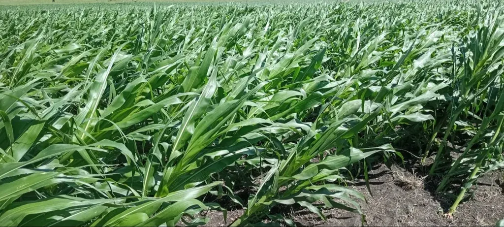 No obstante, sí hubo un temporal previo, en la noche del 2 de marzo, que generó acostamiento de plantas de maíz, que casi en su mayoría se vienen recuperando lentamente.