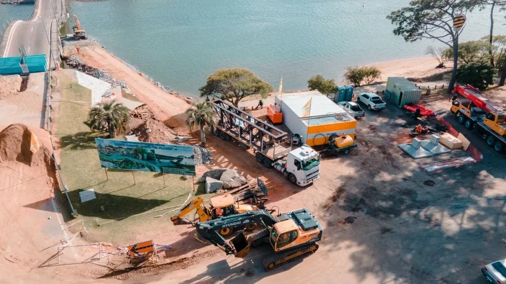 Estas vigas se sotendrán sobre ocho "pilotes de cemento" que se ubicarán en "ataguías" –unas paredes que se construyen en el agua para facilitar la construcción de cimientos–, y permitirán mantener a flote el puente. Las ataguías fueron finalizadas esta semana, indicaron desde la Intendencia.