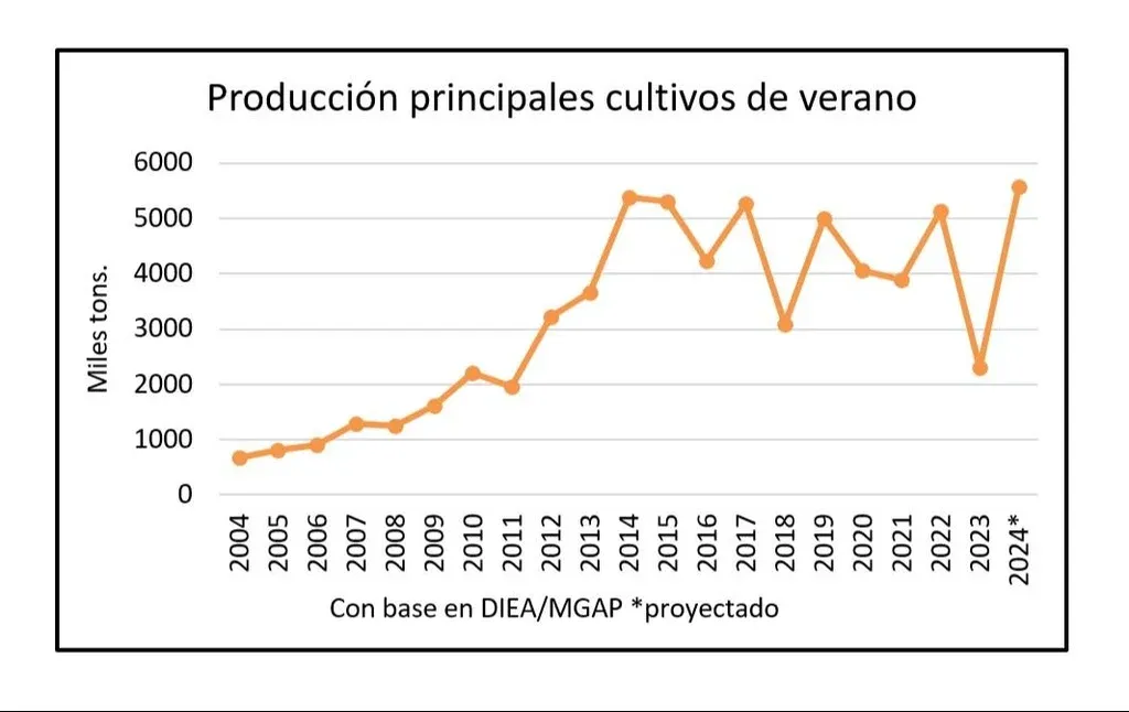 Blasina y Asociados Si el clima acompaña se espera levantar unos tres millones de toneladas de soja y un millón de toneladas de maíz entre abril y junio, principalmente en el suroeste y el litoral del país.