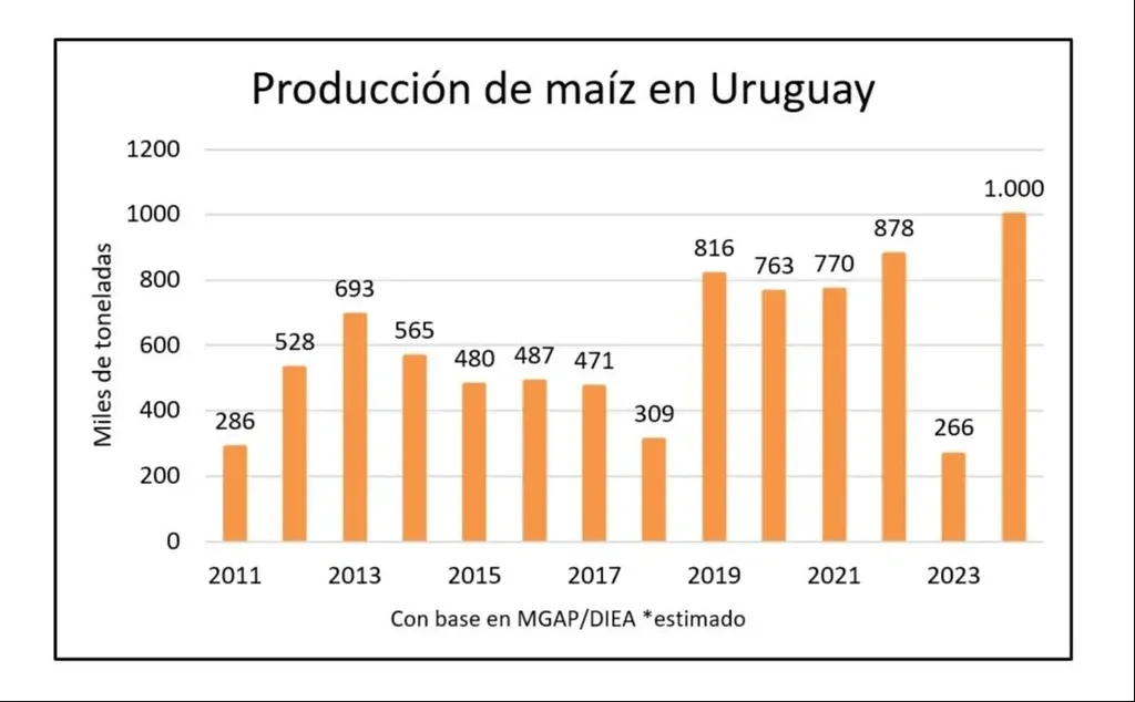 En el maíz se registraría una producción récord, por encima de las 878 mil toneladas del año 2022, que permite tener un saldo que está generando una corriente exportadora por tercera vez en los últimos seis años.