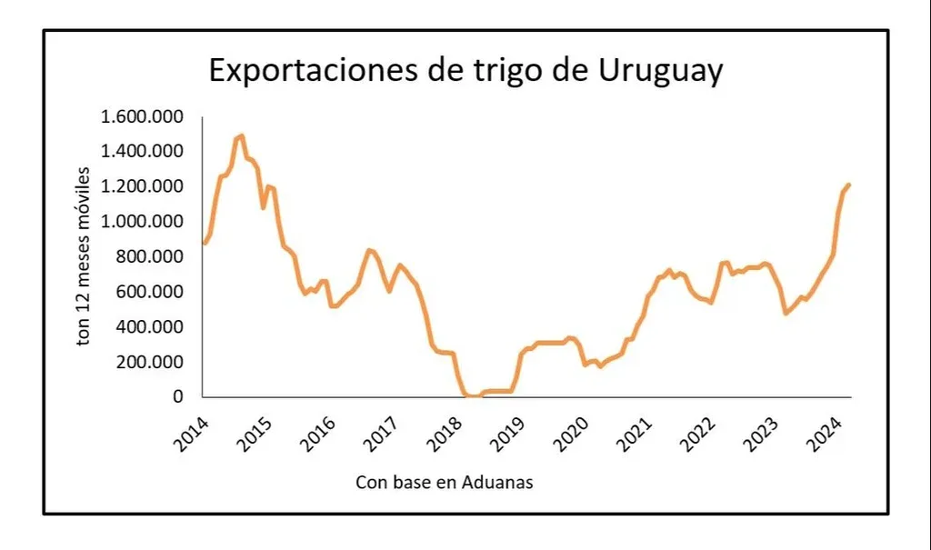 Entre enero y febrero fueron exportadas 530 mil toneladas de trigo, casi el triple que en los mismos meses de 2023 y el doble que en 2022.