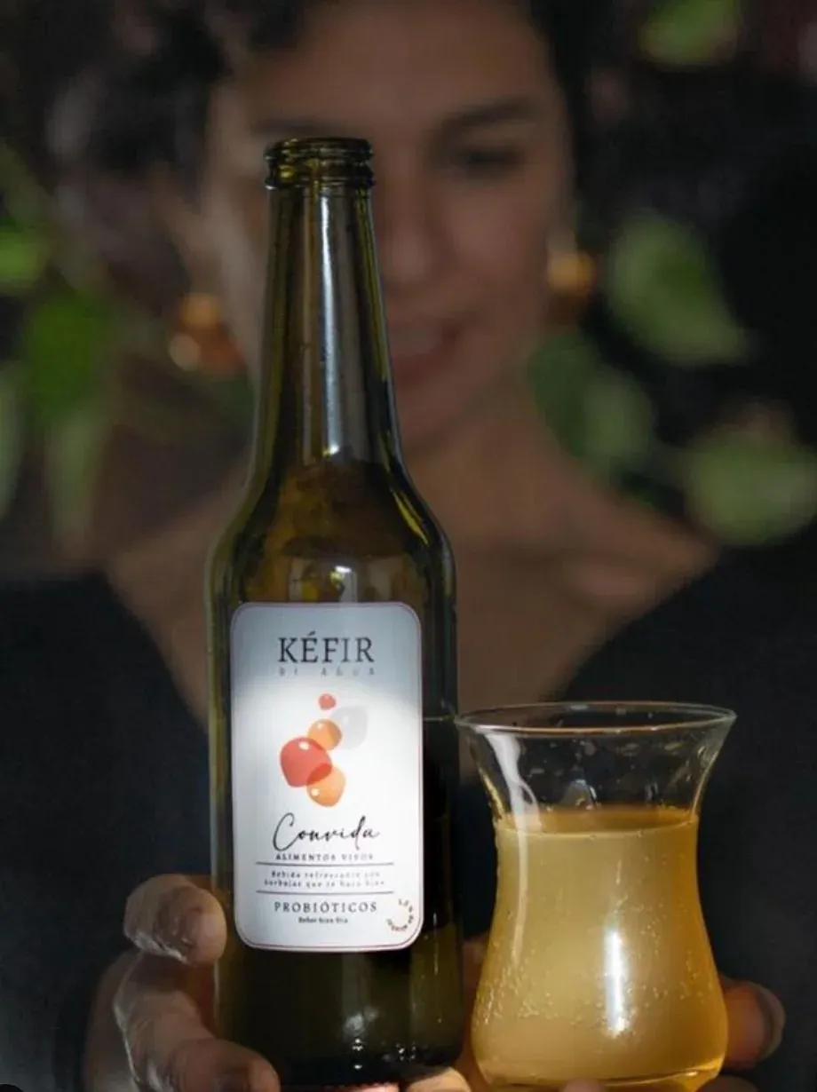Licor de manzanilla con kéfir de agua, bien helado, es una delicia. El kéfir de agua es una bebida fermentada “viva”, de ligero sabor ácido que, en el caso de Convida (producido en Uruguay) viene con sabor a citrus y jengibre. Se puede tomar sola o con otras bebidas y tiene un alto poder probiótico.