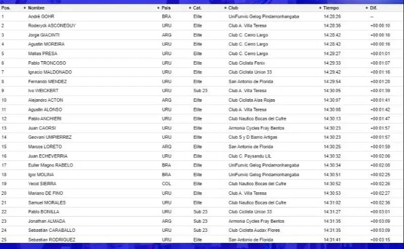La clasificación general tras la Contrarreloj en Paysandú