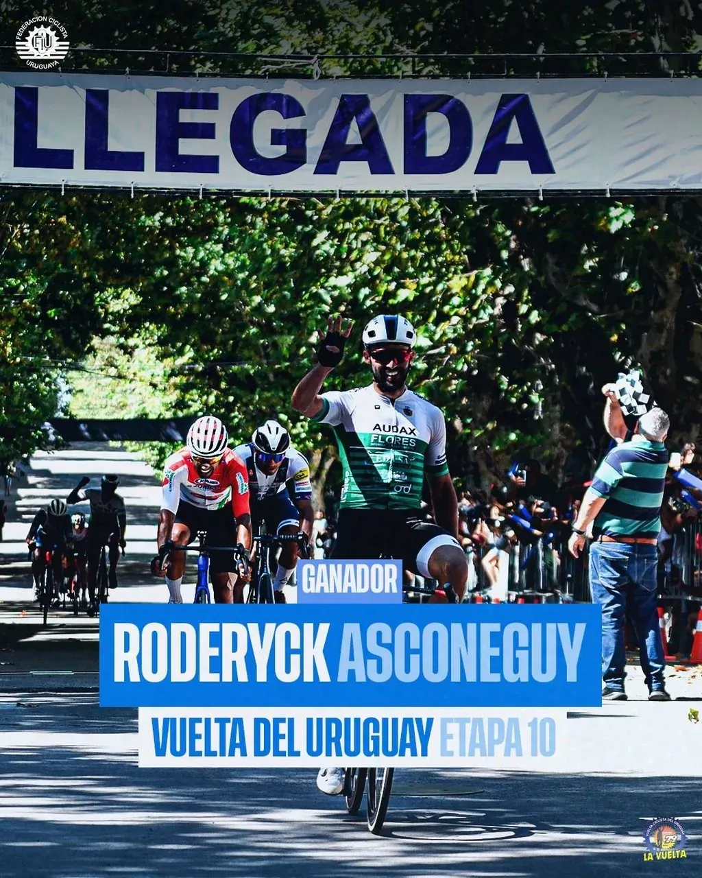 Roderyck Asconeguy ganó la décima y penúltima etapa de la Vuelta Ciclista del Uruguay 2024 que llegó este sábado a Durazno, tras largar en Trinidad.