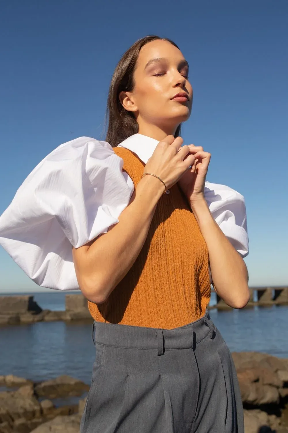 Rossina Salsamendi La blusa Mer de Margo Baridon combina la camisa y el chaleco “Soy muy fan de la camisa y el chaleco”, cuenta a El Observador, por su parte, la directora de arte, diseñadora y estilista Valentina Damiani. Para ella, el chaleco puede ser de felpa, tejido a dos agujas, de lanilla, capitoneado o de nylon. “Me parece que es ideal como última prenda, o mismo por debajo de un tapado ahora que vienen días más fríos”, señala la estilista. Otra combinación que recomienda teniendo en cuenta la versatilidad del chaleco es una triada que promete: vestido corto, chaleco y bucaneras.