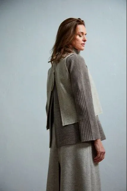 La diseñadora entiende que la funcionalidad del chaleco es lo que hace fuerte a la pieza en esta temporada. No es tan solo una apreciación personal; comenta que las clientas la buscan por su capacidad de abrigar, al tiempo que mientras libera los brazos y permite seguir con las tareas diarias sin limitar el movimiento, una necesidad que también responde a la situación de la pandemia y al lugar donde se desarrolla gran parte de la vida personal, y ahora también profesional: el hogar.