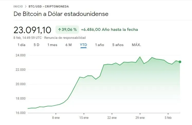 Sin embargo, este miércoles Bitcoin y Ethereum se pintaron de verde. A pesar de ello, los inversores esperaban un disparo en los precios, luego de que la Reserva Federal estadounidense (FED) desacelerara el aumento de las tasas de interés, como lo especulaba el mercado. Mientras tanto, el gran indicador es Bitcoin por encima de los US$ 23.000.