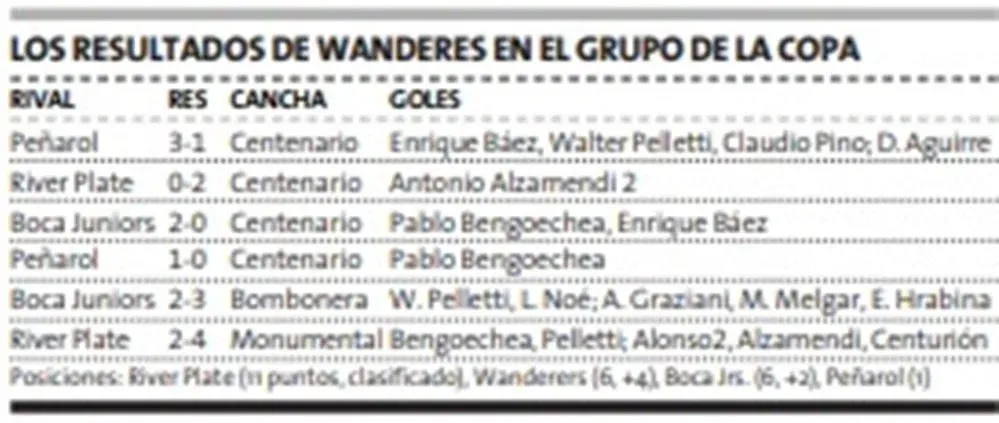 Ese partido quedó entonces en la historia como el primero en el que un equipo uruguayo derrotó por la Libertadores a Boca, hoy seis veces monarca del certamen. Peñarol lo enfrentó 10 veces con siete derrotas y tres empates, Defensor dos (derrota y empate) y el propio Wanderers lo volvería a enfrentar en 2002 sin conseguir ningún punto.