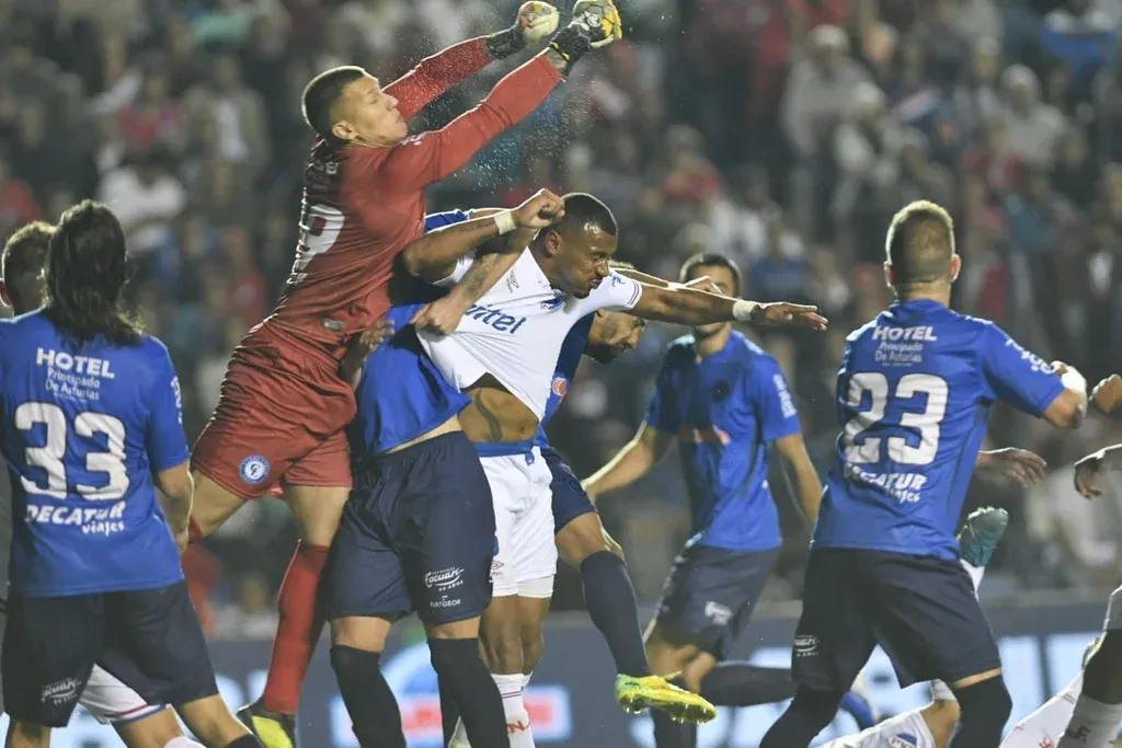 Después, a la hora de jugar, Aguerre fue buena figura. Le sacó un gran remate del ángulo al Rafa García y respondió con aplomo en los envíos al área.