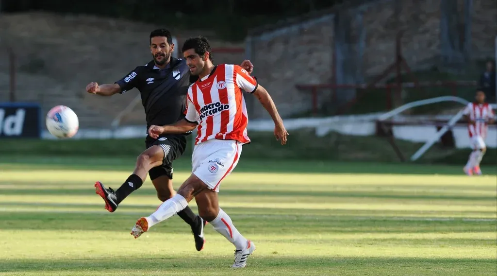 Jugando para Cerro contra su excompañero de Defensor, Sebastián Taborda, que entonces jugaba en Nacional