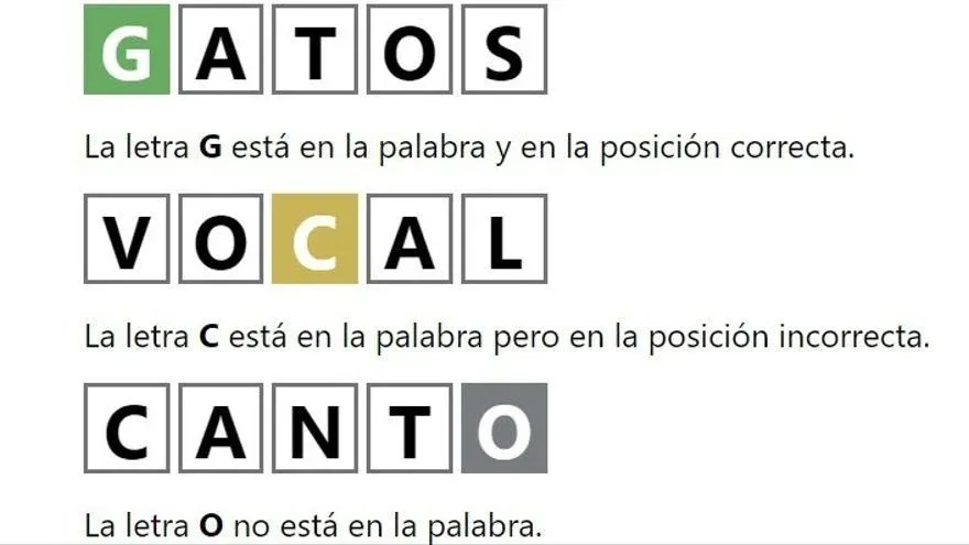 Cinco letras y seis oportunidades. Cada vez que el usuario ingresa una palabra las letras se colorean: las verdes indican que es correcta y está ubicada en el lugar que debería, las amarillas señalan que son la letra correcta pero está en otro lugar, y las letras que no aparecen en la palabra del día quedan destacada en gris.
