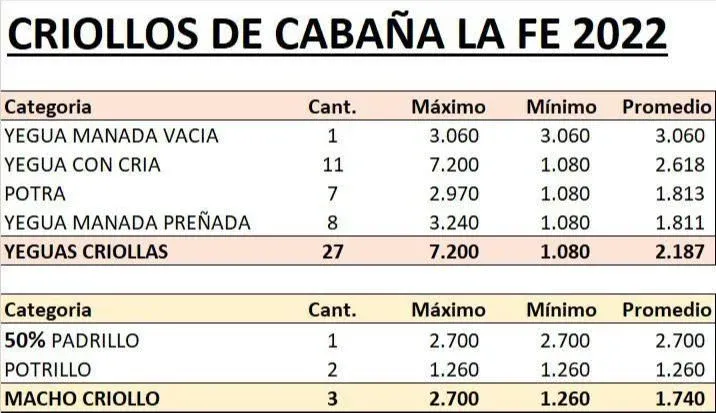Zambrano & Cía vendió todos los Criollos de La Fe