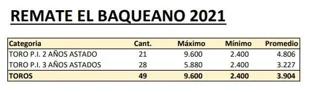En esta oportunidad se vendieron toros PI de dos y tres años, que cerraron la venta con un promedio de US$ 3.904.