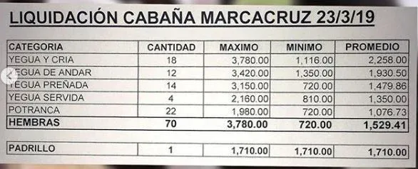 El promedio de las hembras fue de US$ 1.529 y el precio máximo fue US$ 3.780.