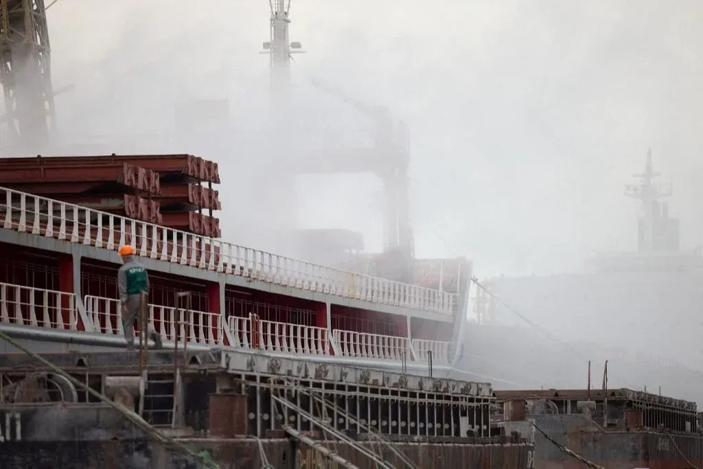 "Está en curso el cargamento del primer barco desde el inicio de la guerra. Se trata de un buque turco", dijo Zelenski, según un comunicado de la presidencia, que mostró un video del mandatario delante de un barco inscrito como "Polarnet".