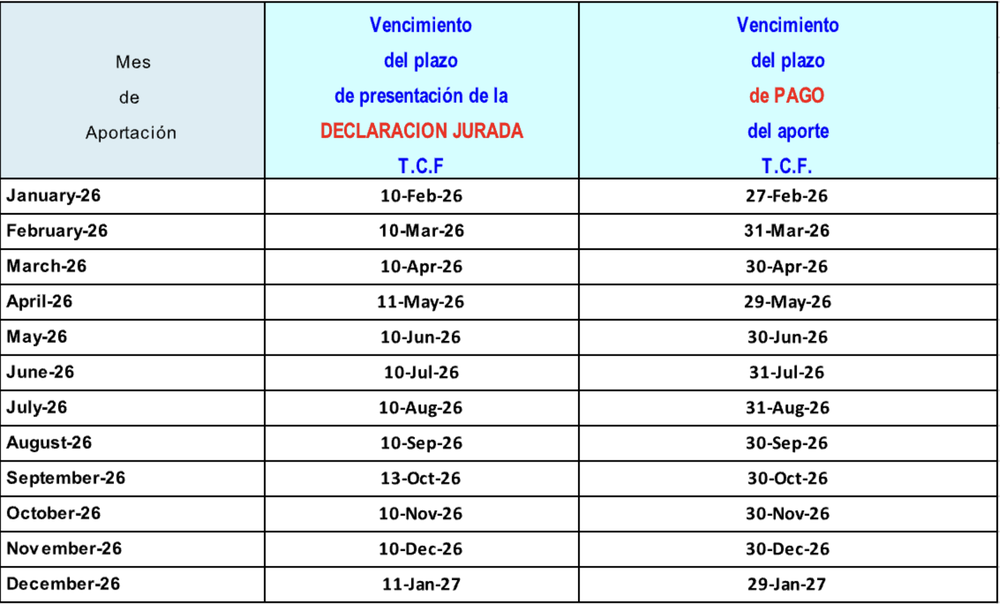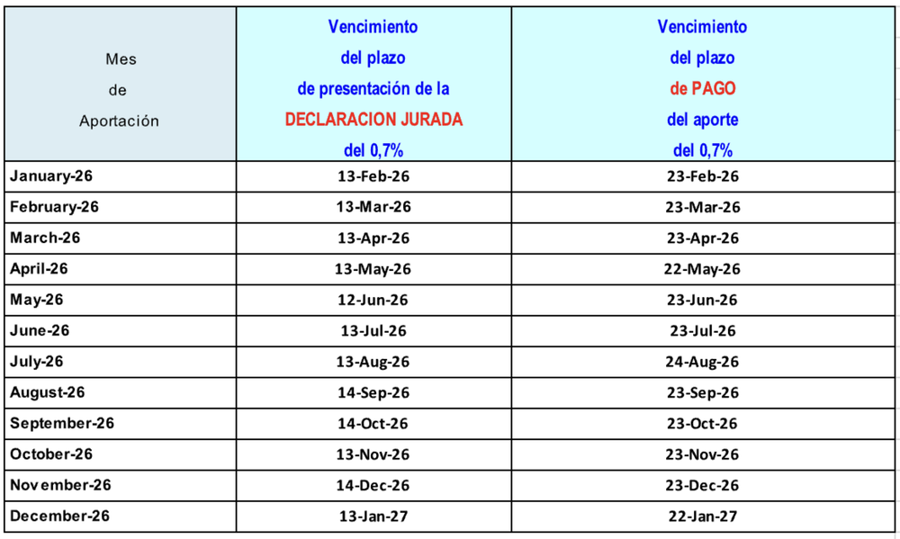 Publicación de Vencimientos de 0,7% y Tasa de Control de Faena para año 2026
