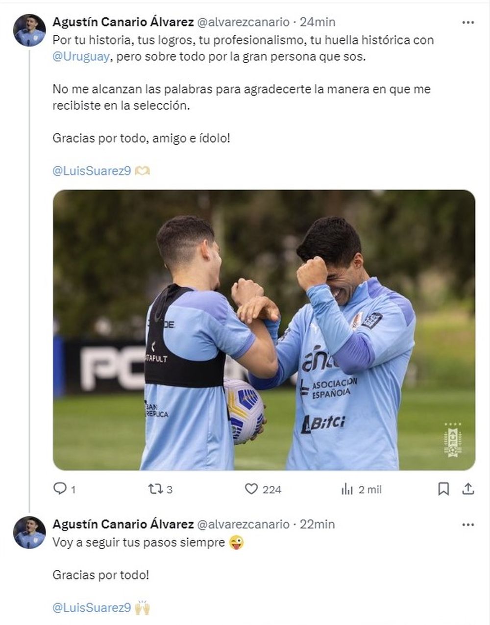 "Voy a seguir tus pasos siempre": el saludo del exgoleador de Peñarol para Luis Suárez en su despedida de la selección